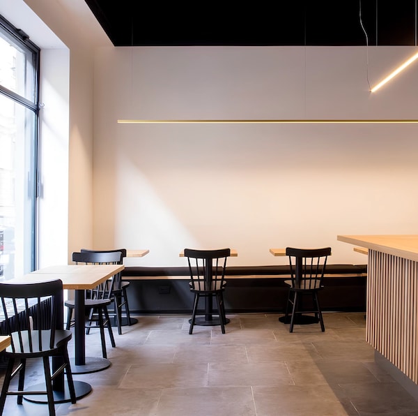 Ai dolci classici si aggiungono creazioni originali come la Danese con crema di mandorle, nespola e timo limone, o la Giorgina con pistacchio siciliano e gruè di cacao. Il caffè? 100% arabica del Costa Rica, tostato a Copenaghen per un gusto fresco e acidulo che si sposa alla perfezione con il burro delle paste. A pranzo, spazio a cruditè, tartare e focacce creative.