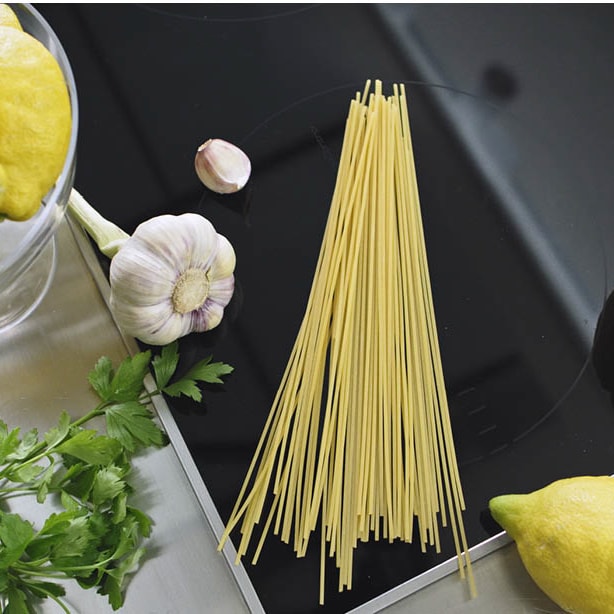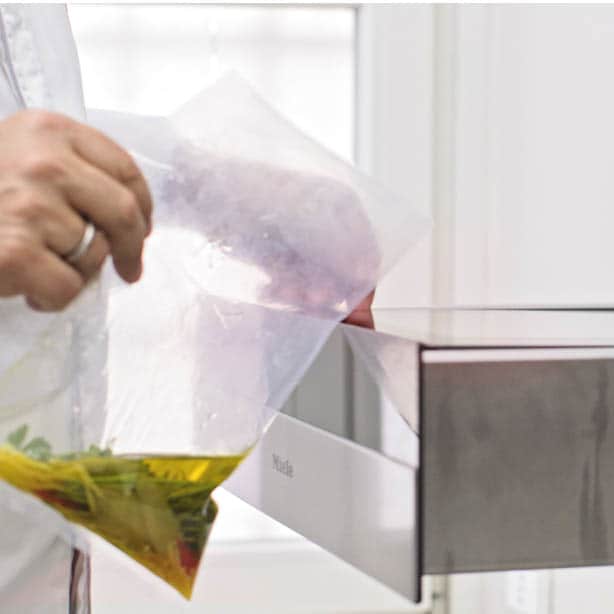 Il Sous Vide è un metodo di cottura straordinario non solo per cuocere le pietanze e ottenere consistenze morbide e dal sapore intenso, ma anche per creare oli aromatizzati a basse temperature. In questa ricetta si inserisce in un sacchetto sottovuoto olio extravergine d’oliva, peperoncino, gambi di prezzemolo e scorza di limone privata della parte bianca. Si crea il sottovuoto e si cuoce in forno a vapore a 45 gradi per 5 ore. In questo modo si estraggono dalla scorza del limone tutti i profumi ed aromi lentamente, in modo estremamente delicato, senza dispersione, e senza il rischio di riscaldare troppo l’olio. Grazie all’utilizzo della temperatura molto bassa e costante del forno a vapore infatti si crea un olio profumatissimo da utilizzare come condimento, in questa e altre ricette. Se desiderate ottenere un olio dal sapore ancora più intenso potete scegliere un olio neutro e privo di sapore come quello di semi di vinacciolo o di riso. Ad una temperatura di 45°C tutte le proprietà rimarranno integre e l’olio assumerà il sapore intenso della scorza di limone.