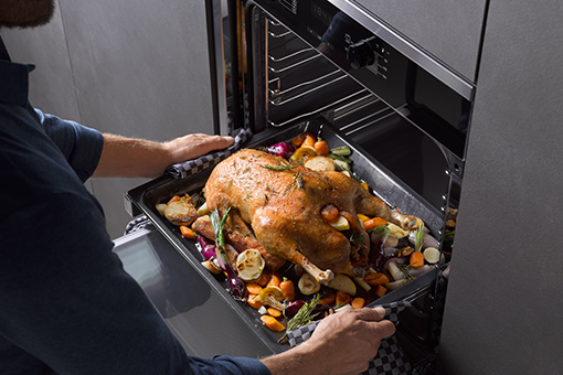 Il vano cottura XXL del forno Miele offre tanto spazio per cuocere e arrostire. È quindi ideale se cucini spesso per la famiglia e amici.