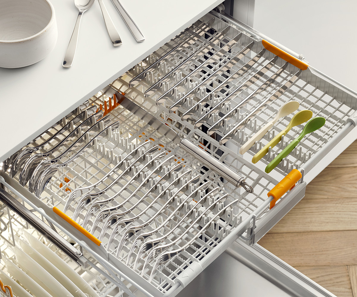 Vuoi sistemare frusta e mestolo nel cassetto posate 3D? Con la lavastoviglie G 6000 EcoFlex di Miele non ci sono problemi!