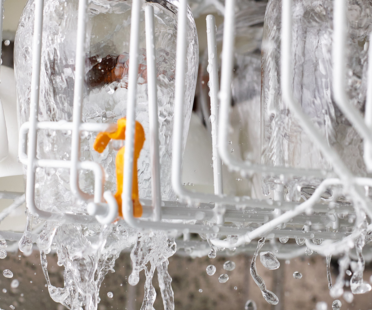 Le stoviglie vengono lavate esclusivamente con acqua pulita. I risultati sono perfetti con soli 6,5 litri.