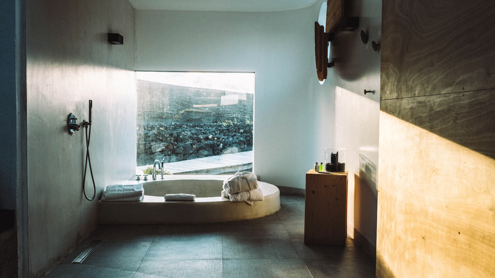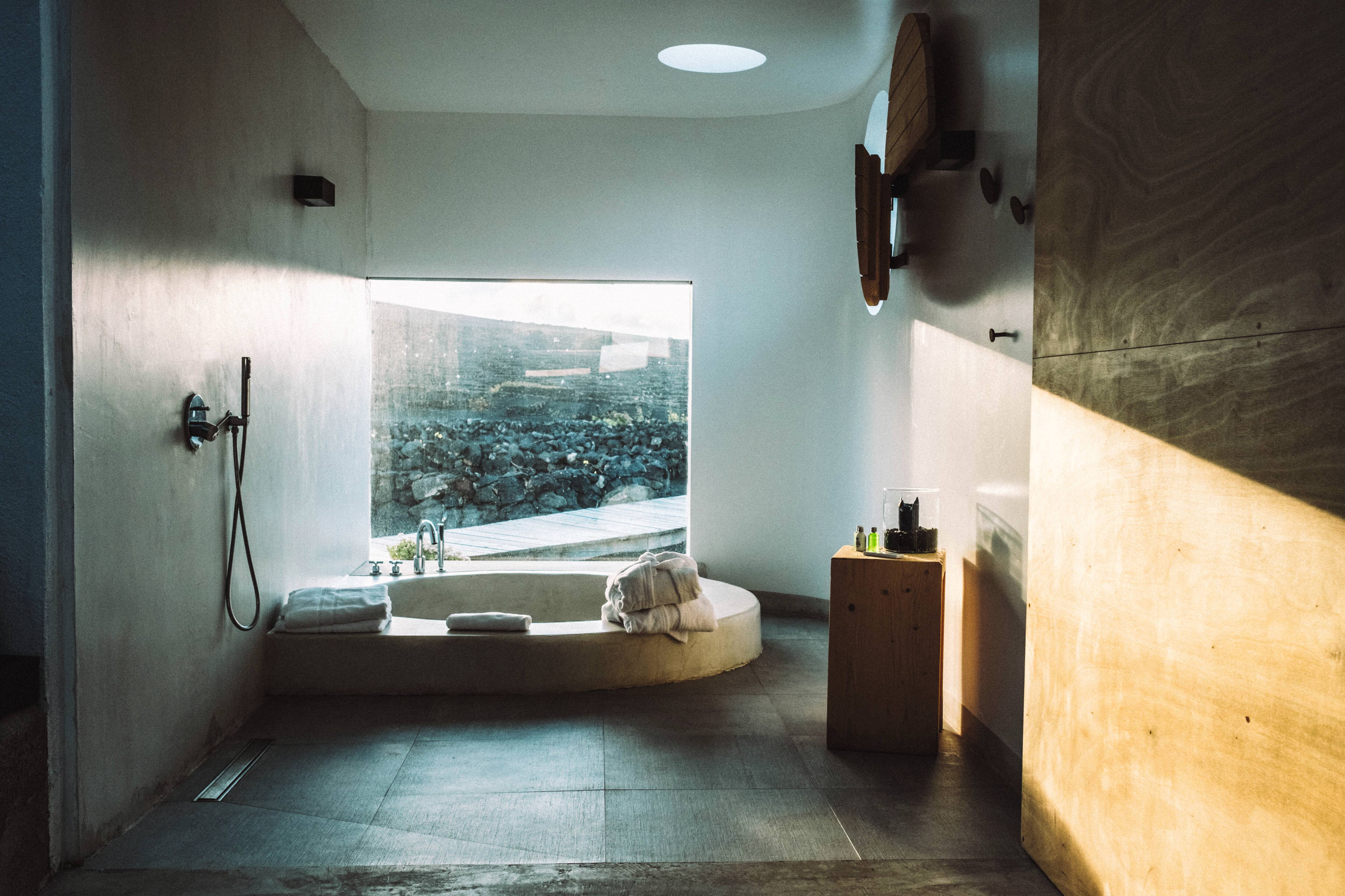 Tra i vigneti coltivati sulla lava di La Geria, sorgono le cinque country suites del Buenavista Lanzarote, un’eco-finca perfettamente integrata nel paesaggio vulcanico, progettata dai proprietari, Mayca e Gonzalo R. Bethencourt, insieme all’architetto Néstor Pérez Batista. Gli interni minimal chic combinano cemento a vista, pochi arredi vintage e tele di Guillermo Fornes alle pareti, mentre le ampie vetrate incorniciano i campi lavici attorno alla tenuta.
