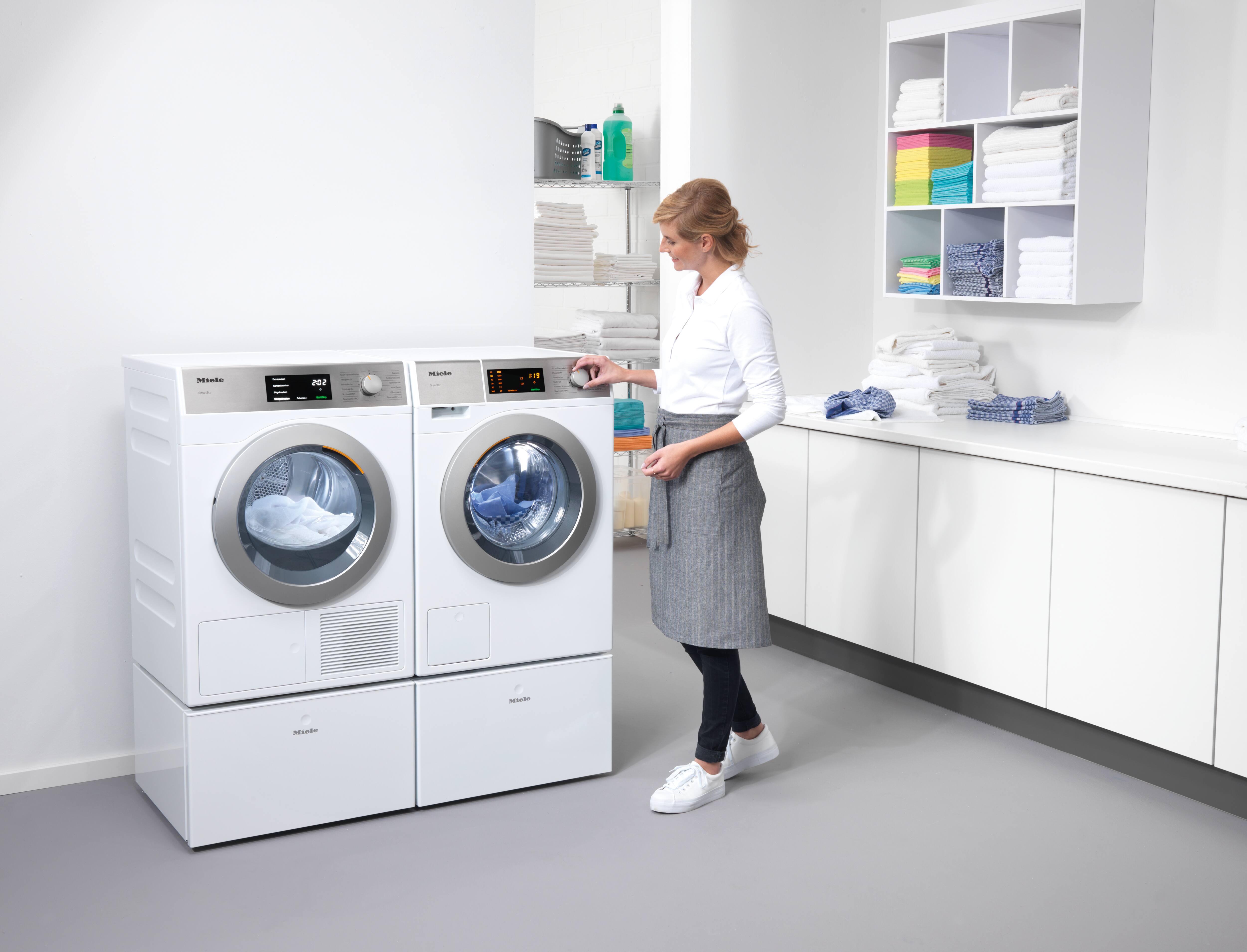 Ob Friseursalon, Bäckerei oder Handwerksbetrieb: Gäste und Kunden erwarten von Ihnen ein gepflegtes Auftreten und makellose Textilien. Die sparsamen Waschmaschinen und Trockner der neuen Einstiegsbaureihe SmartBiz wurden speziell für den gewerblichen Einsatz entwickelt.