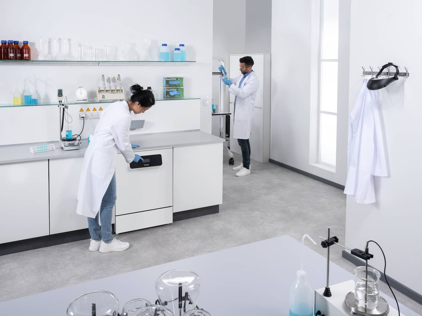 Contemporaneamente è possibile trattare altra vetreria da laboratorio nel cesto superiore. - Flessibili e non complicati: supporti di carico modulari e sistema EasyLoadImpiego flessibile dei supporti di carico