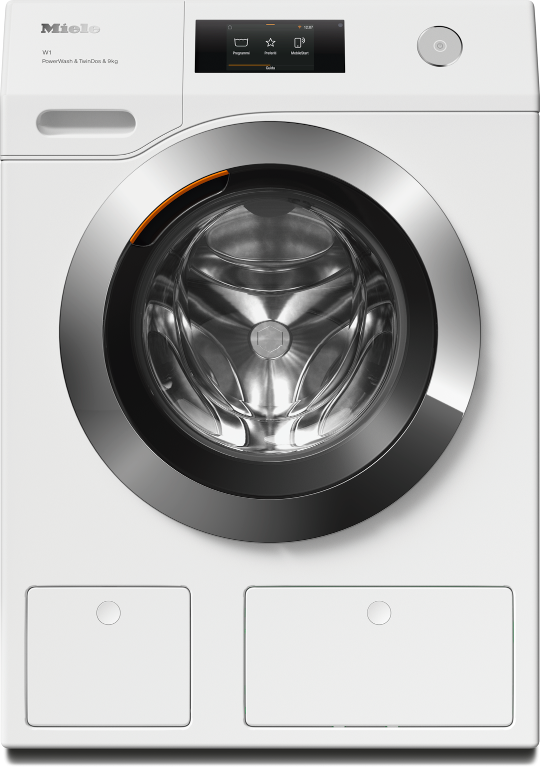 - 12.Durante la fase di sviluppo della serie di lavatrici W1, Miele ha testato i modelli e i componenti principali con 5000 cicli di lavaggio (= 5 cicli di lavaggi alla settimana per 50 settimane) in diversi programmi. Per saperne di più: miele.it/20anni