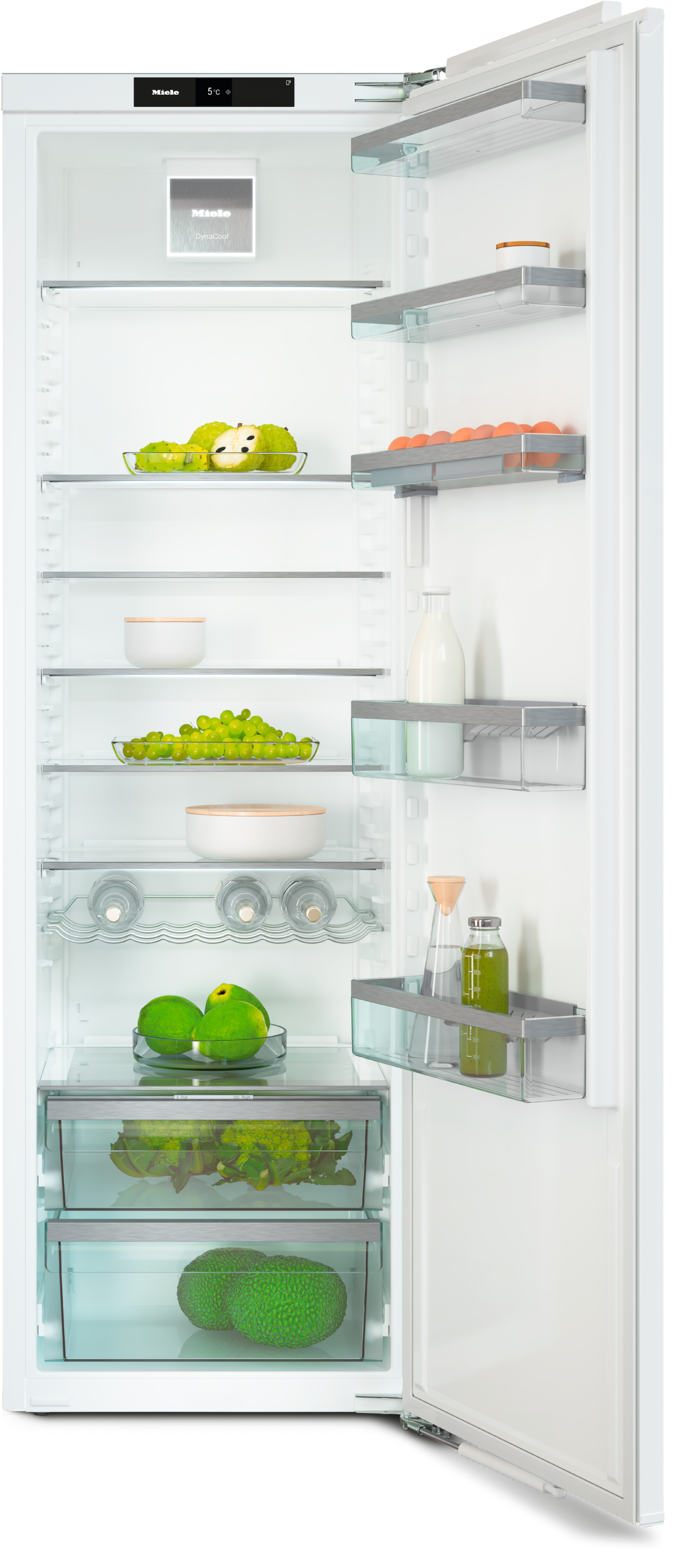 Senza riflessi: i ripiani illuminati si posizionano a piacere nel vano frigorifero e offrono massima flessibilità.