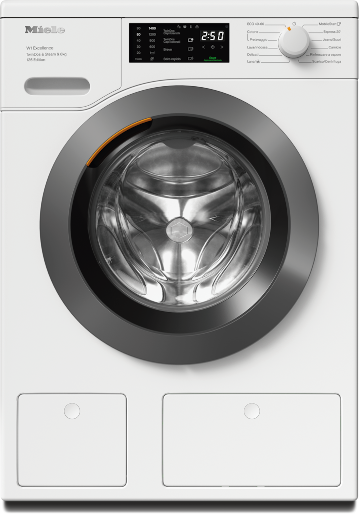 - 9.Durante la fase di sviluppo della serie di lavatrici W1, Miele ha testato i modelli e i componenti principali con 5000 cicli di lavaggio (= 5 cicli di lavaggi alla settimana per 50 settimane) in diversi programmi. Per saperne di più: miele.it/20anni
