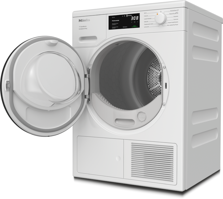 - 3.Durante la fase di sviluppo della serie di asciugatrici T1, Miele ha testato i modelli e i componenti principali con 5.000 cicli di asciugatura (= 5 cicli di asciugatura alla settimana per 50 settimane) in diversi programmi. Per saperne di più: miele.it/20anni