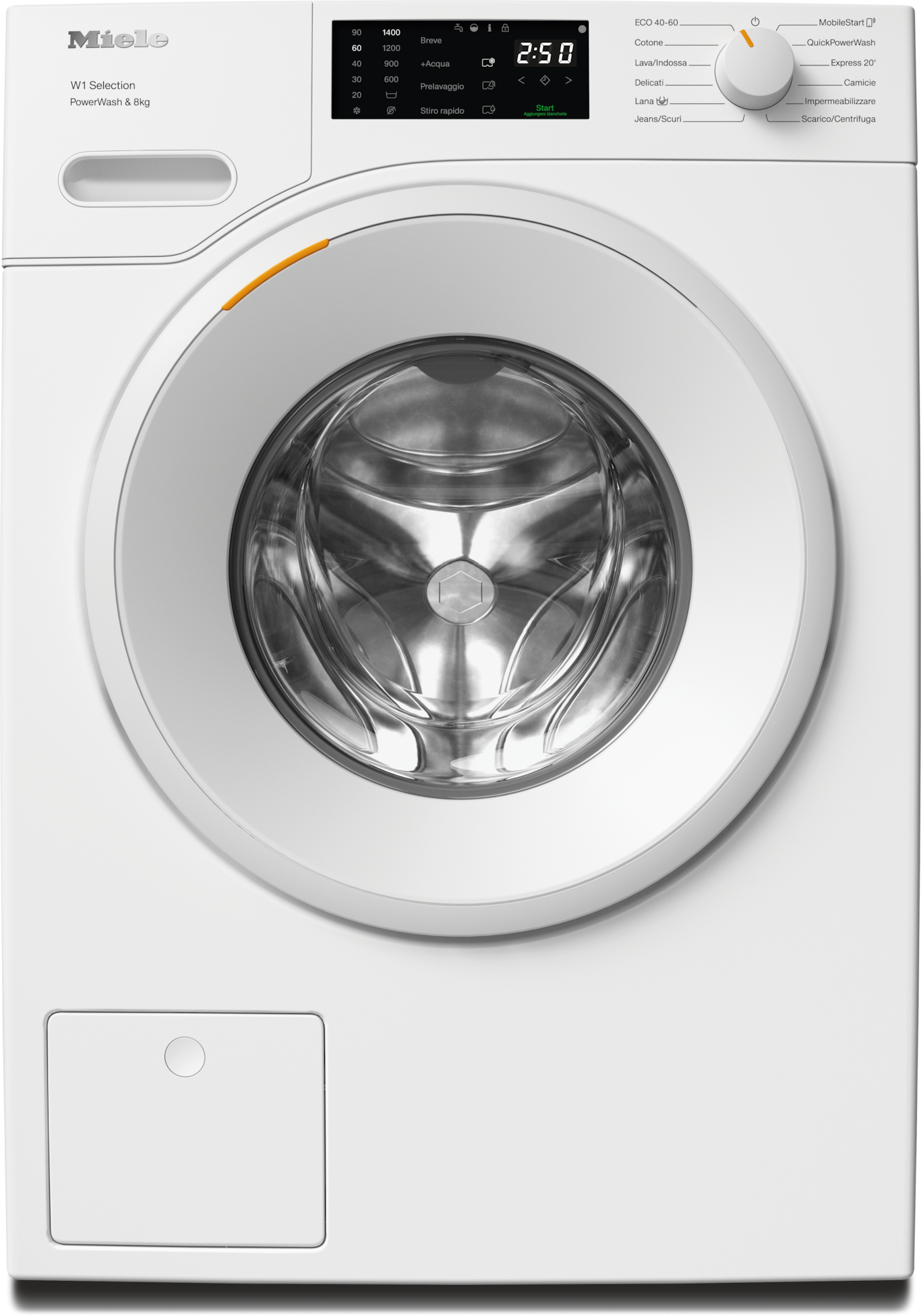 - 7.Durante la fase di sviluppo della serie di lavatrici W1, Miele ha testato i modelli e i componenti principali con 5000 cicli di lavaggio (= 5 cicli di lavaggi alla settimana per 50 settimane) in diversi programmi. Per saperne di più: miele.it/20anni