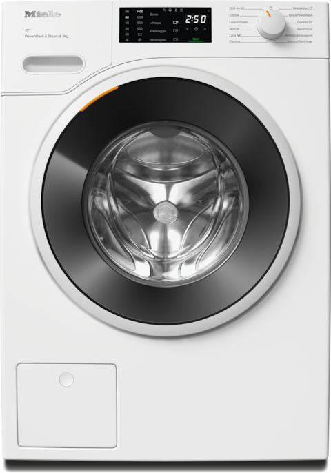- 6.Durante la fase di sviluppo della serie di lavatrici W1, Miele ha testato i modelli e i componenti principali con 5000 cicli di lavaggio (= 5 cicli di lavaggi alla settimana per 50 settimane) in diversi programmi. Per saperne di più: miele.it/20anni